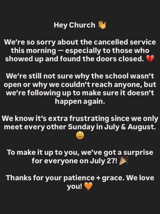 Not the Sunday we hoped for - thanks for your grace. See you July 27! (fb)
