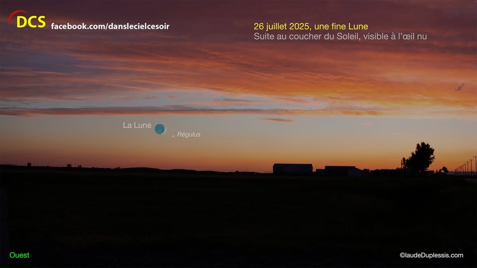 Croissant de lune étoilé ! 🌙 Tout doucement, le magnifique premier croissant de la Lune va commencer à apparaître ces jours-ci. Ce soir après le coucher du Soleil, il sera possible de voir une jolie conjonction. L'étoile Régulus, la plus brillante de la constellation du Lion, sera tout près du croissant lunaire, légèrement à droite. Profitez du Lion avant qu'il ne disparaisse dans les lueurs du Soleil ! (fb)