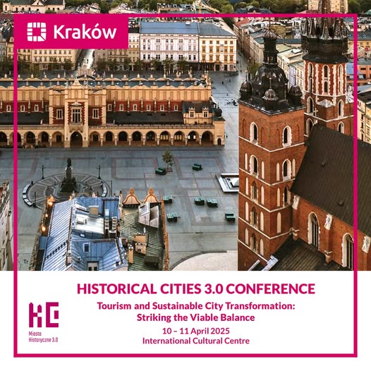 Krakow is pleased to invite you to the 4th International Conference Historical Cities 3.0, entitled "Tourism and Sustainable City Transformation: Striking the Viable Balance”. April 10–11, 2025, experts will gather in Kraków to discuss key topics shaping the future of the tourism industry. The event will feature four thematic panels: 🔹 Panel I: GEN TOUR – Who are the tourists visiting historical cities? 🔹 Panel II: Natural Heritage – Balancing tourist appeal with environmental preservation 🔹 Panel III: Developing a Sustainable and Vibrant Night-Time Economy 🔹 Panel IV: Towards Balanced Place-Making and Creative Interventions Join us at the conference! Register today: https://rejestracja.org/en/miasta-historyczne-3-0/ More information: https://historicalcity.eu/en/conference-2025/ (fb)