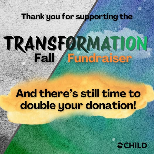 As we started counting some of the donations that came in last night, we wanted to share with you that we already have over $33,000 going toward the Transformation Fall Fundraiser! Thank you so much to every donor who has participated in this incredible feat, and we are eager to continue counting! We are so grateful for your meaningful support, and we pass on the thanks of all of our partners in India, Haiti, and South Africa who are excited to continue transforming your gifts into thousands of lives changed in this coming year. If you weren’t able to attend, there is still time for you to help us reach our goal of $60,000 in one-time gifts and 5 new monthly donors. The matching donor has allowed their matching period to continue for one more week until Thanksgiving Monday, October 13. Remember that every dollar helps, and in this case $1 becomes $2, so it’s even more reason to give. Monthly donations will also be doubled. Take this opportunity to make a difference by transforming these communities through your support and give today! http://childsociety.org/donate Want to share with your friends and family about how they can participate in CHILD’s life changing work? Invite them to donate to our fundraiser! It’s easy: share our social media post and encourage them to make double the difference by donating before Thanksgiving. Thanks for spreading the word about CHILD! Monthly giving is also a big opportunity to help! By giving $30 a month, which is just $1 per day, your gift can transform lives across the world all year round. Monthly donations started by October 13th will also be doubled. (fb)
