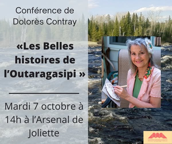 La Société d’histoire de Joliette — De Lanaudière vous convie à la conférence de l’artiste et autrice Dolorès Contré, Les Belles histoires de l’Outaragasipi, à l’Arsenal de Joliette le mardi 7 octobre à 14h. Venez écouter des récits autobiographiques qui raviveront en vous de doux souvenirs de la Pointe-à-Neuf-Pas, de la chapelle des scouts de La Feuillée ou de certains personnages qui ont façonné ces paysages culturels, comme Pauline, Caroline et Hercule Contré de Joliette. Vous découvrirez également des archives et des photographies d'époque des années 1940-1950, complètement inédites. Dolorès Contré a grandi au bord de l’Outaragasipi (la rivière L’Assomption), entourée des histoires de sa famille. Artiste en arts visuels, conteuse et autrice, elle a illustré et publié des livres, des récits et des articles dans divers journaux et revues. Inspirée par une vision cosmocentrique, des éléments de la nature et des principes du féminin, elle contribue, à travers ses œuvres, au monde de l’interrelation et de la conscientisation citoyenne. Dans son dernier récit autobiographique, Les Belles histoires de l’Outaragasipi (2024), elle met en lumière la contribution des femmes métisses et canadiennes à leurs relations sociales avec l’environnement. Fondatrice du Cercle d’apprentissage Docomig, elle intervient en tant que médiatrice culturelle en proposant des ateliers adaptés aux milieux éducatifs, muséaux, communautaires, interculturels et environnementaux. Plusieurs de ses projets artistiques thématiques ont été soutenus en partenariat avec des organismes et des institutions au Québec, dans les provinces maritimes, dans l'ouest du Canada et en France. Vous trouverez une sélection de ses productions médiatiques sur YouTube. Coût : Gratuit pour les membres de la Société d’histoire de Joliette-De Lanaudière et 5,00 $ pour les non-membres Adresse : 585 Archambault, entrée porte avant, Joliette, J6E 2W7 Les livres seront en vente sur place au coût de 20$, dédicacés par l’autrice. Argent comptant seulement. (fb)