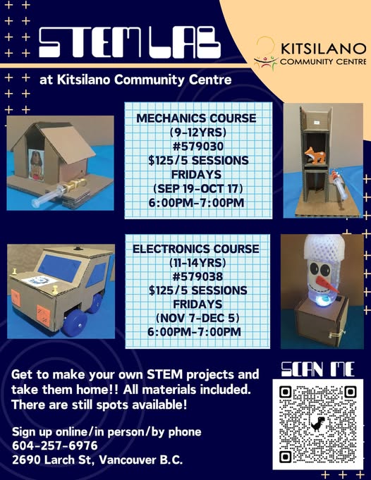 Calling all preteens and youth who love to tinker and make things! 🛠💡Do you want to create cool projects such as a hydraulic elevator or a flying chair? Then these courses are for you! You get to make your own STEM projects and take them home! Two courses are coming up - a mechanics course for preteens ages 9-12 years (number 579030) and an electronics course for youth ages 11-14 years (number 579038). Materials included.📦 https://anc.ca.apm.activecommunities.com/vancouver/activity/search/detail/576108 https://anc.ca.apm.activecommunities.com/vancouver/activity/search/detail/576116 (fb)