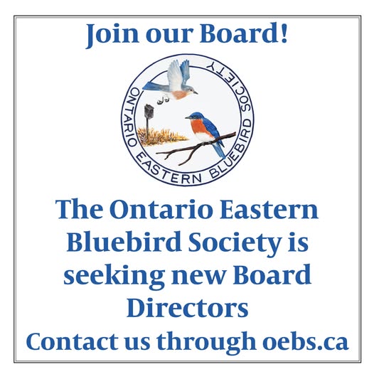 The Ontario Eastern Bluebird Society is seeking two new board members: a treasurer and a director at large. If you care about the conservation of our native cavity nesters and are looking for a volunteer opportunity please contact us through the website: oebs.ca (fb)