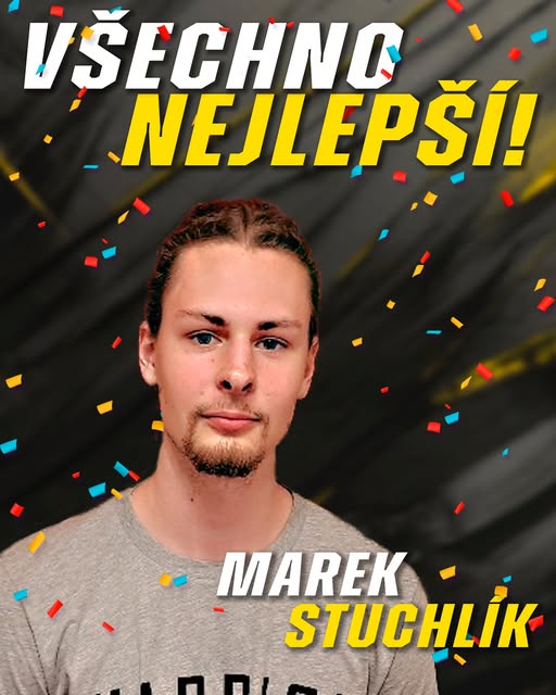 🎉 Dnes slaví narozeniny náš brankář – Marek Stuchlík! Přejeme všechno nejlepší, pevné zdraví, pohodu a spoustu úspěšných zákroků! 🎂🥂 (fb)