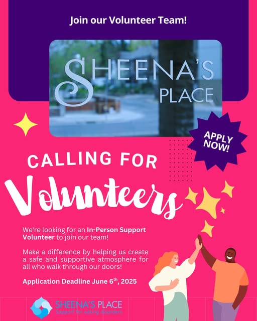 🌟 Volunteer Opportunity: 🏠 In-Person Support Volunteer at Sheena's Place 🌟 Are you passionate about making a difference? Join Sheena's Place as a In-Person Support Volunteer and help create a welcoming, supportive environment for individuals affected by eating disorders. 💜 ✨ What You'll Do: ✅ Greet participants with warmth and professionalism. ✅ Assist with administrative tasks such as attendance and data entry. ✅ Ensure the house and kitchen are tidy, organized, and welcoming for all visitors. ✅ Be the first point of contact for those seeking help. ✅ Support Sheena’s Place staff at community events. ✨ Why Volunteer With Us? 🌱 Gain meaningful experience in a mental health-focused non-profit. 💼 Build skills in communication and organization. 💜 Be part of a compassionate community making an impact. 🕒 Commitment: Available from Tuesday-Thursday for 1 OR 2 shifts a week (3-4 hours between 10am-8pm) for a minimum of 6 months. 📍 Location: 87 Spadina Road, Toronto, Ontario, Canada M5R 2T1 📅 Application Deadline: June 6th, 2025 This is a great opportunity to contribute to a meaningful cause while developing valuable skills in a supportive and inclusive setting. 🏠 Interested? Send your resume and a brief cover letter to atudor@sheenasplace.org with the subject line “In-Person Support Volunteer Application.” 💬 Tag a friend who’d be perfect for this role or share to spread the word! Together, we can create a safe space for healing. 💜 Full posting below! https://sheenasplace.org/volunteer/ (fb)