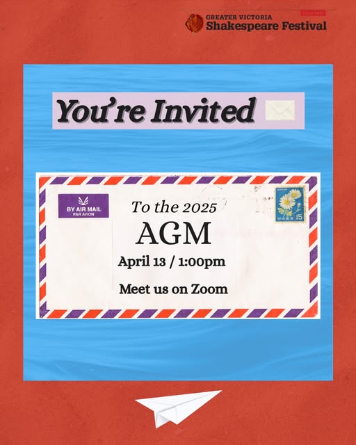 It’s that time of year! We’re having our AGM, and you’re invited! Sunday, April 12th at 1:00pm! Join us on zoom to see what’s going on behind the scenes here at the festival and meet some fellow thespians! We’ll be chatting about the future of the festival, including our upcomjng production of Romeo and Juliet, as well as our educational program and community events. We’d love to have you. I heard the coolest people are gonna be there 👀 🌹🌹🌹 GVSF Annual General Meeting Sunday, April 12th | 1:00pm On Zoom DM or email us at info[at]vicshakespeare.com for the link! (fb)
