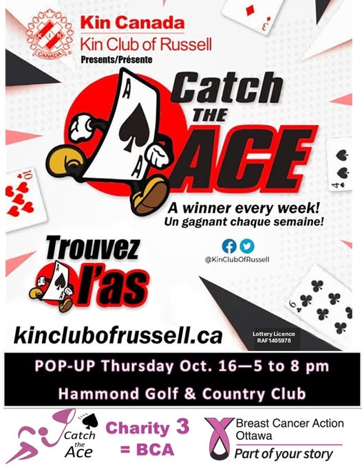 https://kinclubofrussell.ca/catch-the-ace/ Buy your tickets before Saturday night! BCA is charity #3! (fb)