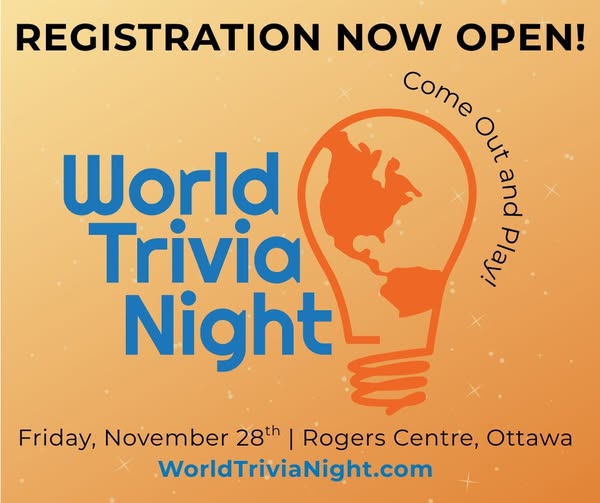 Registration for World Trivia Night 2025 is NOW OPEN!! 🌍💡 Join us at Rogers Centre Ottawa on November 28th for Canada's largest live trivia contest! ❗Thanks to our Category Sponsors, you'll get to enjoy our NEW interactive Activation Stations to prove that play is not just for kids. Snap photos with your team, be entertained, and enjoy fun games together before the competition begins! Compete for the Trong Ngyuen Memorial Trophy, epic bragging rights, and incredible prizes - but the true reward is knowing that your participation supports kids in child welfare right here in Ottawa. 💙 Don't miss out - Register today! 👉 https://secure.qgiv.com/event/worldtrivianight2025/ #TriviaForACause #MakeADifference #OttawaEvents #WorldTriviaNight #SupportLocalKids (fb)