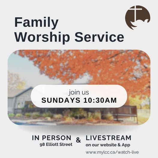 Join us Sundays 10:30am in person and online for our Family Worship Service www.mylcc.ca/watch (fb)