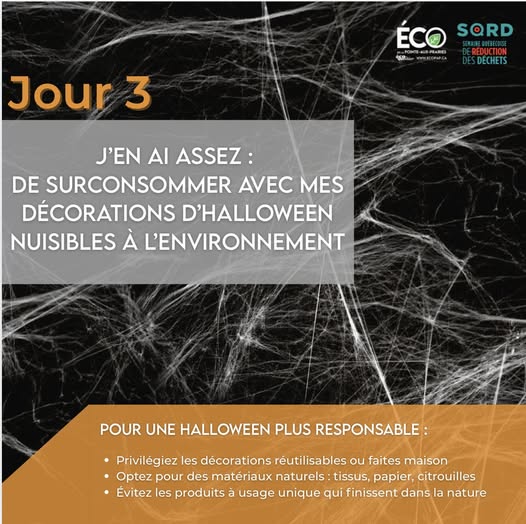 𝐒𝐐𝐑𝐃 - 𝐉𝐨𝐮𝐫 𝟑 : 𝐉'𝐞𝐧 𝐚𝐢 𝐚𝐬𝐬𝐞𝐳 𝐝𝐞 𝐬𝐮𝐫𝐜𝐨𝐧𝐬𝐨𝐦𝐦𝐞𝐫 𝐚𝐯𝐞𝐜 𝐦𝐞𝐬 𝐝𝐞́𝐜𝐨𝐫𝐚𝐭𝐢𝐨𝐧𝐬 𝐝'𝐇𝐚𝐥𝐥𝐨𝐰𝐞𝐞𝐧 𝐧𝐮𝐢𝐬𝐢𝐛𝐥𝐞𝐬 𝐚̀ 𝐥'𝐞𝐧𝐯𝐢𝐫𝐨𝐧𝐧𝐞𝐦𝐞𝐧𝐭 ! Saviez-vous que certaines décorations d’Halloween peuvent nuire à la faune ? Les toiles d’araignées synthétiques et autres petits accessoires en plastique se détériorent très lentement et peuvent être ingérés par les oiseaux ou petits animaux, avec des conséquences graves sur leur santé. Faisons la fête tout en protégeant nos amis à plumes et à poils ! 💛 (fb)