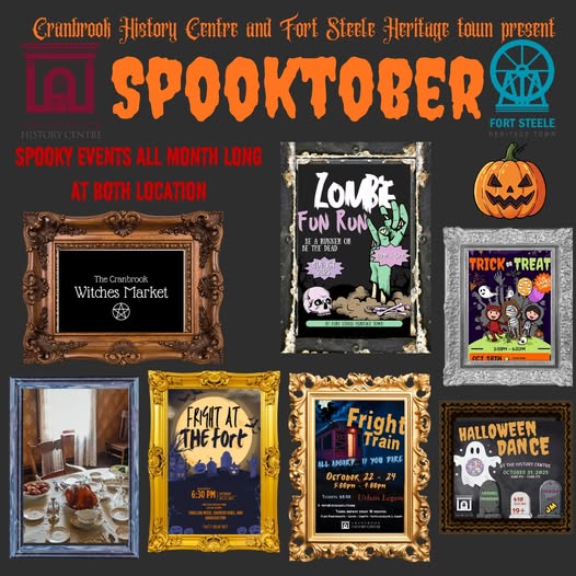 The Cranbrook History Centre and Fort Steele Heritage Town are proud to present Spooktober! Both Sites will be brining you spooky events all Month Long! Cranbrook Witches Market by @_thespiral_path : October 3rd- 4th Thanksgiving at Fort Steele - SOLD OUT! Trick or Treating at Fort Steele - Fort Steele Heritage Town - Oct 18th Fright Train at The Cranbrook History Centre - Oct 22nd - 24th Fright at the Fort - Fort Steele Heritage Town - Oct 25th Halloween Dance at The Cranbrook History Centre - Oct 31st Zombie Fun Run - Fort Steele Heritage Town - Nov 1st Tickets on sale Online for most events please see event calanders for both sites www.fortsteeleheritagetown.com www.cranbrookhistorycentre.com (fb)