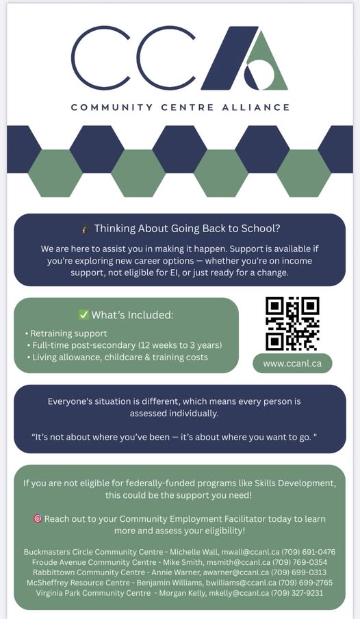 Thinking of going back to school? CCA can help with retraining, living allowance, and childcare support! Reach out to your local Community Employment Facilitator to learn more. “It’s not about where you’ve been — it’s about where you want to go.” (fb)