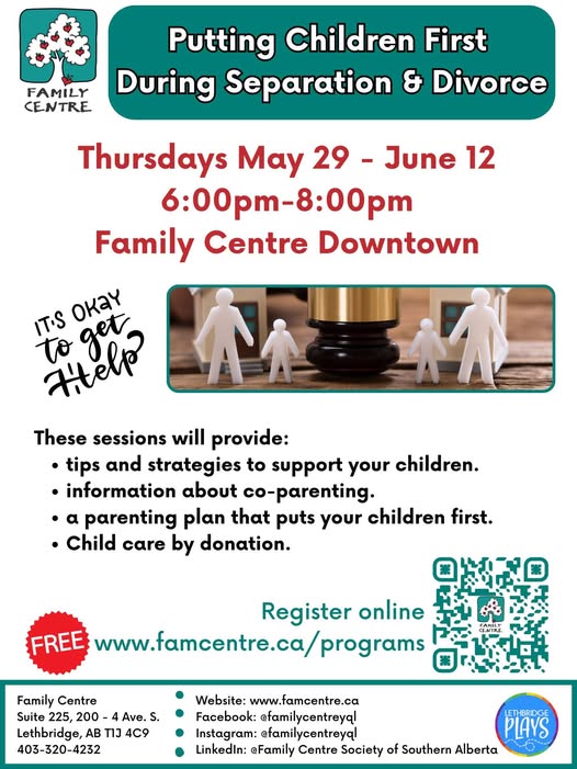 💔 Co-parenting after a separation or divorce isn’t easy — especially when communication is tough. But your child’s emotional well-being matters most. 💛 This program helps parents navigate conflict, build healthier communication, and create parenting plans that keep kids' needs at the center. Because even through change, kids deserve support, stability, and love. 👨👩👧👦✨ Thursdays May 29 –June 12, 6-8pm. Register online: https://www.famcentre.ca/programs/ Lethbridge Legal Guidance Society Richard A. Low & Company LLP AZ Lawyers LLP Splitsville Divorce & Family Law Stringam Law Letourneau LLP Lethbridge Law Office Huckvale LLP #familycentreyql #parenting #coparenting (fb)