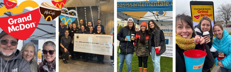 💚 𝗚𝗥𝗔𝗡𝗗 𝗠𝗖𝗗𝗢𝗡 𝟮𝟬𝟮𝟱 – 𝗨𝗻 𝘀𝘂𝗰𝗰𝗲̀𝘀 𝗿𝗲𝗰𝗼𝗿𝗱! 🍟 Le 8 mai dernier, OASIS santé mentale Granby et région a eu la chance d’être bénéficiaire du Grand McDon grâce à la générosité de 𝗠𝗺𝗲 𝗚𝗲𝗻𝗲𝘃𝗶𝗲̀𝘃𝗲 𝗕𝗲́𝗱𝗮𝗿𝗱, propriétaire des McDonald’s de Granby et Bromont. 🌟 Grâce à une mobilisation incroyable des bénévoles, des pompiers Association des pompiers et des pompières de Granby , des préventionnistes, de l’Escouade Desjardins, de Mme Julie Bourdon - Mairesse de Granby (même en cuisine!) et surtout des employés dévoués des restaurants, nous avons amassé 𝗹𝗮 𝘀𝗼𝗺𝗺𝗲 𝗿𝗲𝗰𝗼𝗿𝗱 𝗱𝗲 21 119 $ 🙌 Merci à tous ceux et celles qui sont passés nous voir, ont fait un don ou simplement encouragé notre mission. Ensemble, on change les choses 💙 #GrandMcDon #OASISsantémentale #Merci #Générosité #Granby #Bromont #SantéMentale (fb)