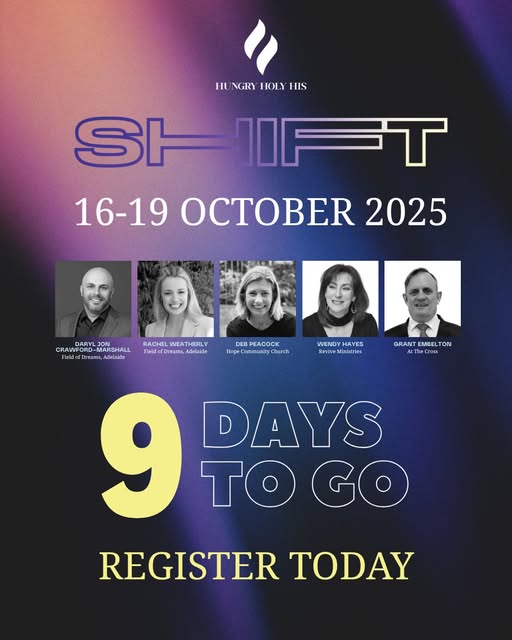 9 DAYS TO GO!!!!!! SHIFT Conference 16th-19th October We are ready for Holy Spirit to come and move and do all He wants to do to SHIFT us into His way! Register today at https://parkridgebaptist.churchcenter.com/registrations/events/2913472 (fb)