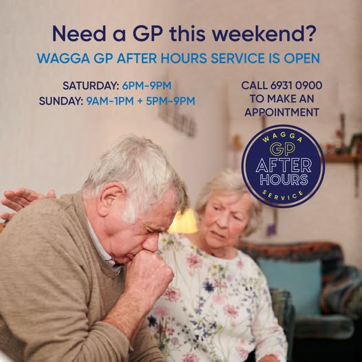 🩺 The Wagga GP After Hours Service is open this weekend between 6pm and 9pm on Saturday and 9am and 1pm and 5pm and 9pm on Sunday. Call 02 6931 0900 to make an appointment. More info here: https://mphn.org.au/after-hours Alternatively, for free trusted health advice call HealthDirect on 1800 022 222. (fb)