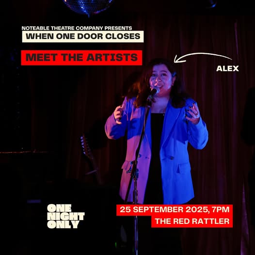 MEET THE ARTISTS | Alex Gonzalez Alex graduated from Brent Street with a Diploma of Musical Theatre in 2019 and has continued to grow her creative repertoire since. Alex’s theatre credits include Definitely Not A Hungry Game: A Parody Musical (Dramafreak Productions), Carrie (Ignite Theatre Co.), Girl Shut Your Mouth (Theatre Travels), 1984: The Musical (Independent), and Inner West Side: The Musical (UltraCult). Alex also regularly performs in improv comedy shows and in 2025 won the Improv Comedy Cagefight Cup where she was awarded the title of MVP. She also co-hosts improv podcast Jungle Warriors with fellow comedian Yarno Rohling. When One Door Closes plays for One Night Only @redrattlersydney on 25 September. Tickets on sale now at the link in our bio! (fb)