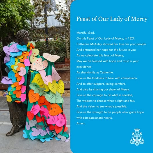 Feast of Our Lady of Mercy | Today, we join Mercy communities around the world in celebrating the Feast of Our Lady of Mercy. We honour the vision of Catherine McAuley, who opened the House of Mercy in Dublin on 24 September 1827. Nearly 200 years later, her legacy of compassion, service, and hope continues to inspire and guide us. (fb)