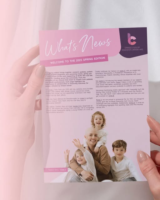 🌸 Our Spring Newsletter is Here🌼 In this issue, meet new team members and spotlight our clinical trials team. Keep up to date about upcoming fundraising events, be inspired by Tanita’s powerful story of hope, and learn more about the support services available to patients this season💗 💌Stay connected and up to date with Breast Cancer Research Centre-WA 🔗 https://bcrc-wa.com.au/our-spring-2025-newsletter-is-here/ (fb)