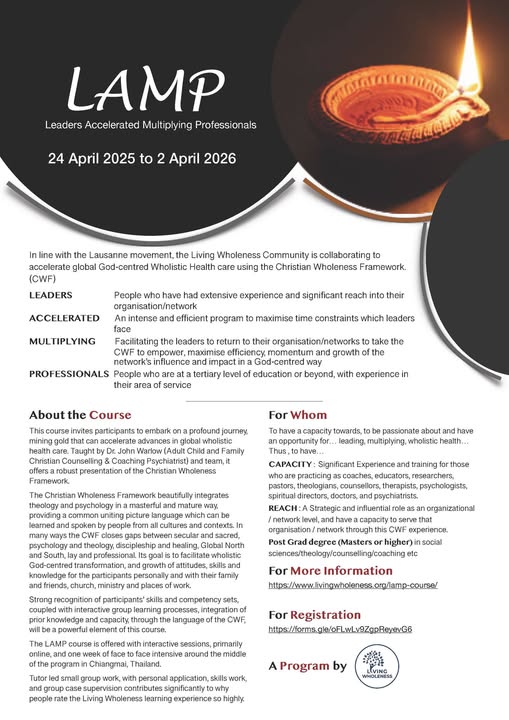 For more information and registration, click: https://www.livingwholeness.org/lamp-course/ (fb)
