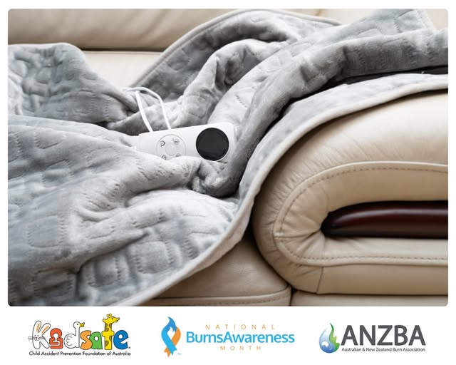 To prevent burn injuries from using electric blankets, make sure you turn them off before going to bed. It’s best if they are kept flat on the bed to reduce damage, and when not in use, roll them up. The risk of using an electric blanket on an infant far outweighs the benefits. Instead, opt for layered clothing and portable heaters in the room. #NBAM2025 #RemoveCoolCoverSeek ANZBA (fb)