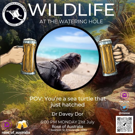 🐢✨ Glow-in-the-dark turtles and tiny accelerometer backpacks? It’s not sci-fi—it’s cutting-edge sea turtle research! This month at Wildlife at the Watering Hole, discover how cutting-edge technology is revealing the hidden lives of sea turtle hatchlings. Davey Dor from UNSW will share insights from his PhD research on Heron Island, where glowing markers and micro sensors are being used to track hatchlings from nest to ocean. By investigating conservation strategies such as nest relocation and shading, this research is uncovering how human intervention can shape hatchling development, behaviour, and survival—offering new tools for protecting these vulnerable marine reptiles. 📍 Rose of Australia, Erskineville NSW 📅 6pm, Monday 21st July https://rzsnsw.org.au/event-6255480 Don't miss this fascinating talk on marine science, technology, and the future of turtle conservation! #WildlifeTalks #SeaTurtles #ConservationTech #MarineBiology #HeronIsland #UNSWResearch (fb)