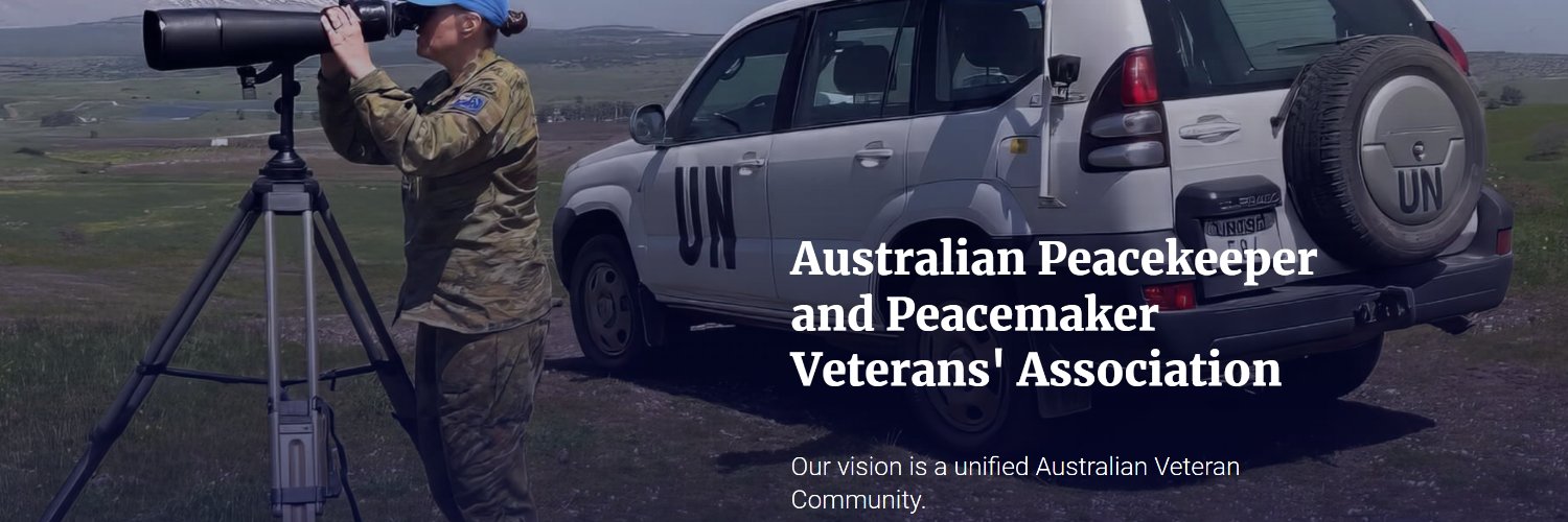 Join Us Member login Contact Us Events Wellbeing Support Connect with us Quicklinks Join Us Member login Contact Us Events Wellbeing Support Connect with us Australian Peacekeeper and Peacemaker Veterans039 Association Our vision is a unified Australian Veteran Community. We engage with all veterans of modern operations their families and those who support them. This and it includes the 60 of veterans who do not contact DVA. We respect all veterans when they transition and we appoint them to positions of authority.