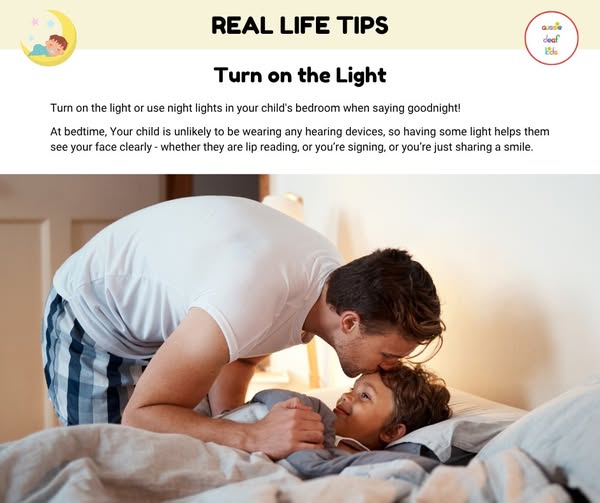 Turn on the light #reallifetips #bedtime #turnonthelight #goodnight #aussiedeafkids #deafkids #deafchildren #parentsofdeafchildren #hearingloss #hardofhearing (fb)