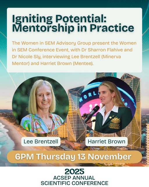 Join us in championing Women in Sports and Exercise Medicine at the upcoming Women in SEM Conference Event, supported by LifeHealthcare. An event not to be missed, this year’s theme is ‘Igniting Potential: Mentorship in Practice’. Dr Sharron Flahive and Dr Nicole Sly will be interviewing a Mentor, Lee Brentzell (Non-Executive Director AusCycling, Director KPMG) and Mentee Harriet Brown (World Ironwoman Champion, Exercise Physiologist, Founder and Director Kamana Community) from the Minerva Network. Find event and registration details here: https://acsepconference.com/women-in-sem-event (fb)