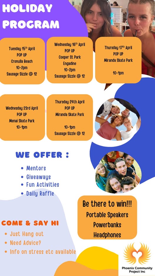 🎉 School Holidays Just Got Better! 🎉 Phoenix presents: KEEP ME SAFE – a FREE school holiday hangout for teens! Join us for games, good vibes, and great giveaways every day! 🧠 Need someone to talk to? Our friendly mentors will be on hand for a chat anytime. 🌭 Free sausage sizzles, drinks, chips, and chocolates – because snacks make everything better! 🎁 Daily prize draws for awesome stuff like Bluetooth speakers, headphones, and power banks! Come chill, connect, and have a blast in a safe, welcoming space. It’s fun. It’s free. It’s for you. 📣 Spread the word and bring your mates! (fb)