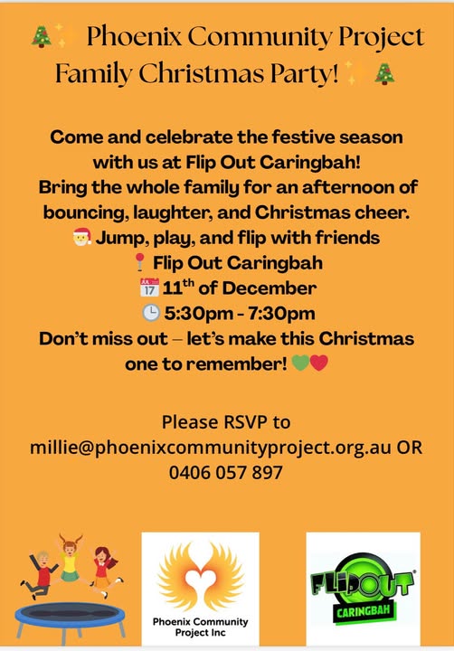 It’s getting close to that time of the year again. Phoenix are having their annual family Christmas party at Flip Out. Parents and siblings are all welcome to come . Please RSVP to the details below so you don’t miss out 🧡🧡 (fb)