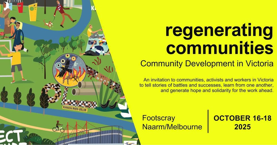 🌿 We’re excited to share that The Good Neighbourhood Project is helping organise this year’s Regenerating Communities Conference! It’s all about neighbours, practitioners, and changemakers coming together to imagine what’s possible when we put relationships and community at the centre. 📍 16–18 October at Borderlands Cooperative (Footscray) + Maribyrnong Civic Hub 🎉 Expect stories, workshops, and plenty of space to connect, dream, and learn alongside others who care about community. We’d love to see some familiar faces there — come join us! 👉 Register here - regeneratingcommunities.net (fb)