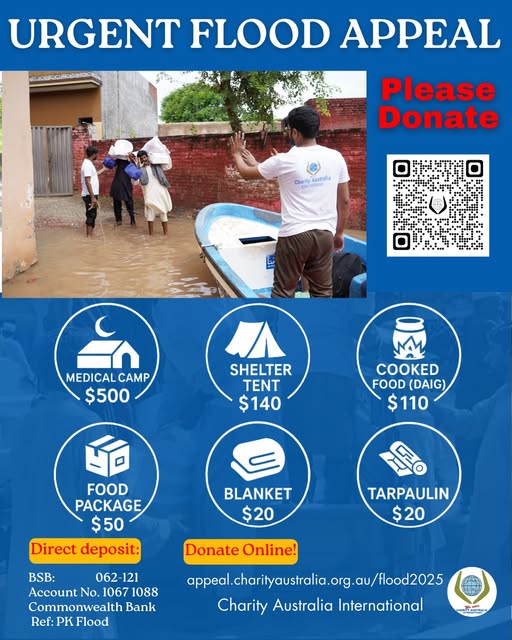 🍛 Relief Activities – 𝗙𝗹𝗼𝗼𝗱 𝗥𝗲𝗹𝗶𝗲𝗳 𝟮𝟬𝟮𝟱 🍛 Charity Australia International is on the ground in relief activities in Flood affected areas of Punjab. 🙏 Help us reach more families: https://appeal.charityaustralia.org.au/flood2025 #PakistanFlood #FloodRelief #CookedMealDistribution #CharityAustralia #HumanitarianAid (fb)