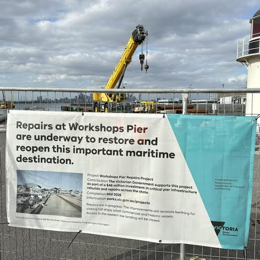 For those who came in late…. The Workshops Pier at the Seaworks Maritime Precinct is currently closed for major repairs. These repairs are expected to be completed by mid-2026. The pier is undergoing a significant structural upgrade to repair its piles and beams. A marine exclusion zone is in effect for public safety during the works. Project Details: * Status: Underway * Timeline: Expected completion by mid-2026 * Reason: The pier’s original structure, built in 1942, was in poor condition. * Scope: Major construction, demolition, and strengthening, including replacing piles and steel beams. * Funding: Part of a $46 million Victorian Labor Government investment in state pier infrastructure. #visitwilliamstown3016 #lovethewest #visitvictoria #wherebigthingshappen #locationmanager #seaworkswilliamstown #experiencehobsonsbay #creativecityhobsonsbay (fb)