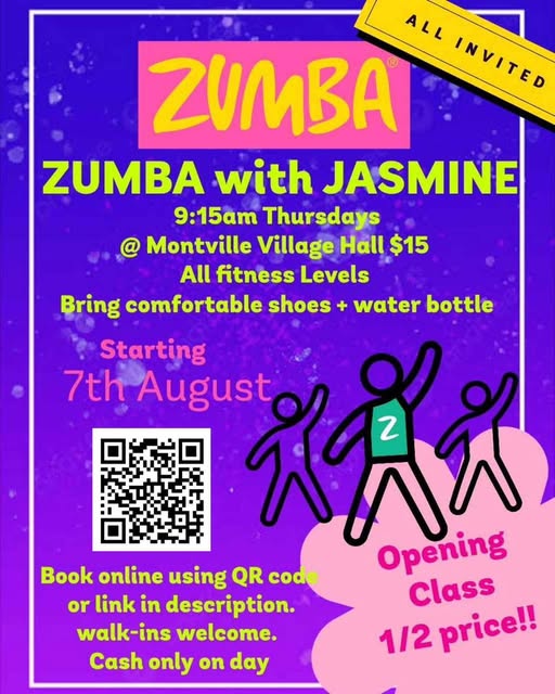 We are very excited to share that Zumba is joining our ever growing list of classes at the Village Hall. Zumba is a great fitness option for anyone who loves a unique workout option. You don’t need to be the best dancer, just willing to have some fun and a laugh. Join wonderful Jasmine at 9:15am tomorrow! (fb)