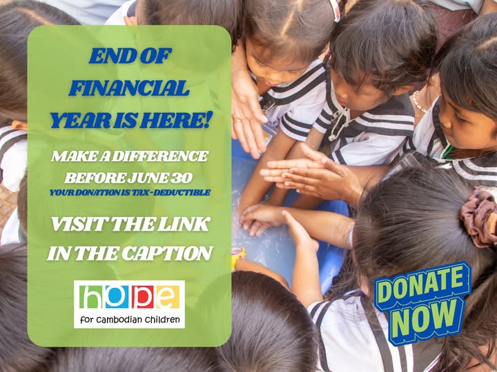 The End of Financial Year is here! Your donation can bring education, care, and opportunity to children in Cambodia. All donations are tax-deductible – give before June 30 and make a lasting impact. Visit: https://eofy-hope-drive.raiselysite.com (fb)