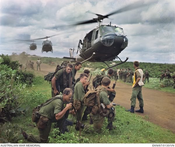 Today, on the anniversary of the Battle of Long Tan, we pause to remember and honour all who served in the Vietnam War. More than 60,000 Australians served in the Vietnam War. Legacy cares for the families and partners of veterans, including those who served in Vietnam. We honour the sacrifice of those who fought, we remember those who never made it home, and we give thanks for the courage and service of all who wore the uniform. To their families... We see you, we stand with you, and you are never forgotten 💙 📸 Members of 5 Platoon, B Company, 7RAR waiting to be airlifted by US Army helicopters from an area just north of Phuoc Hai. Image courtesy of the Australian War Memorial (fb)