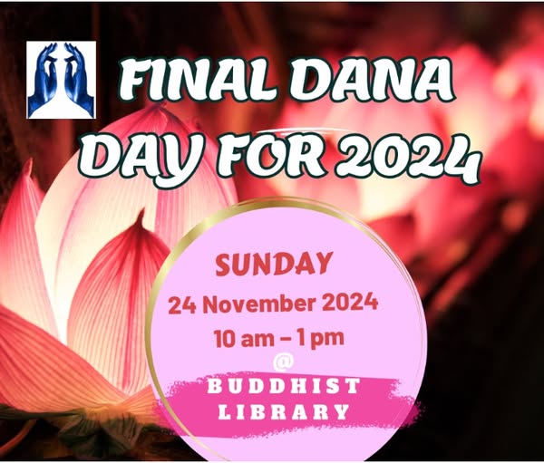 Please join us for our last Dana Day for 2024! Dana Days are an opportunity to: - gather as a community - practise meditation together - offer a meal to Bhante - share social time and a meal, catching up with others on the path. Dana Days are a joint venture between the Buddhist Library (90–92 Church Street, Camperdown) and the Association. from 10 am to 1:30 pm. #buddhistlibrary, #Dana, #DanaDay, #bhantetejadhammo, #AEB (fb)