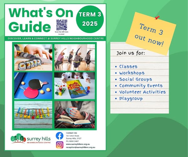 Just attended a workshop at Surrey Hills Neighbourhood Centre and I can’t recommend it enough! Such a welcoming community and endless opportunities to grow and make friends! 🌟detail |
