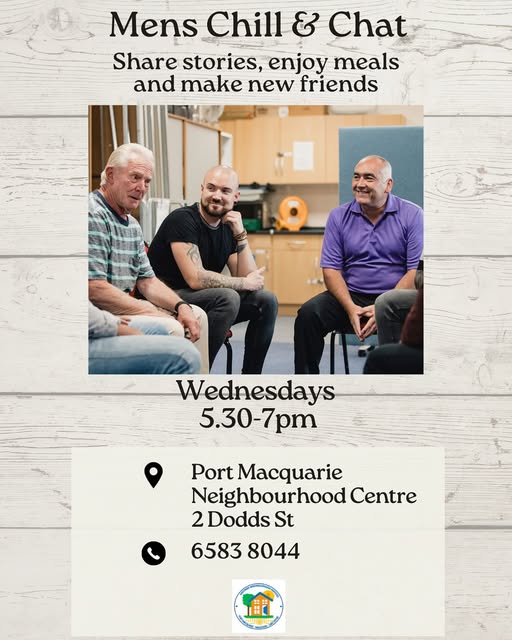 👍Wednesdays Men’s Chill + Chat Drop in for a snack & a chat. (fb)