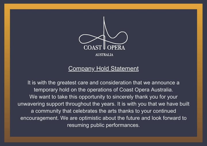 Due to circumstances outside of our control, Coast Opera Australia regrettably must postpone our much anticipated recital on Sunday, February 25th, 2024. Further details and updates, please visit www.costoperaaustraloa.com Contact@coastoperaaustralia.com (fb)