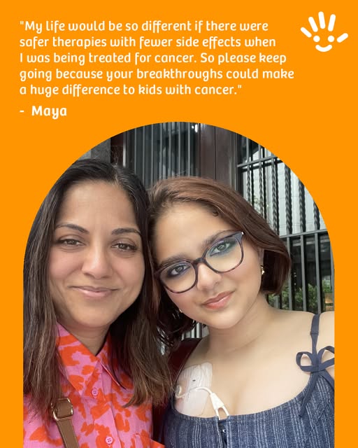 Now a teenager, Maya has been cancer-free for 11 years, but the treatments that saved her life have left her with lifelong chronic health issues. "My life would be so different if there were safer therapies with fewer side effects when I was being treated for cancer. So please keep going because your breakthroughs could make a huge difference to kids with cancer." Read Maya’s story here: https://ow.ly/LsZl50W5Rcf (fb)