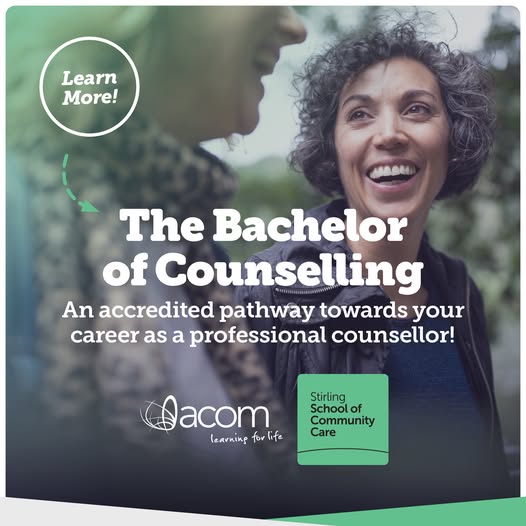 The Bachelor of Counselling provides students with an accredited pathway towards a career as a professional counsellor. Taking a comprehensive and balanced approach that incorporates theology, psychology and spirituality, students will learn the highest standards of ethics, professionalism and accountability, with qualifications that are recognised by the Australian Counselling Association (ACA) and Christian Counsellors Association of Australia (CCAA). Learn more: https://acom.edu.au/study/courses/bachelor-of-counselling/ (fb)