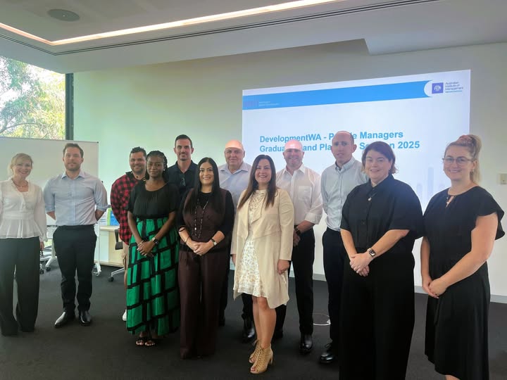 That’s a wrap! We’re pleased to have delivered another impactful round of tailored leadership development training for DevelopmentWA. Delivered as a five-day program across the year, this highly curated experience brought together a group of middle leaders to engage in high-impact learning, focused on: 🌐 Navigating complexity and change 🧠 Leading with influence and emotional intelligence 🎯 Coaching for performance 📣 Communicating effectively in dynamic environments 🎓 The program concluded with a presentation and graduation day, attended by members of DevelopmentWA’s Executive Team. 👏 Congratulations to all graduates! We’re confident you’ll meet future challenges as courageous, confident, and capable leaders - ready to make a positive impact. We’re proud to support DevelopmentWA’s investment in leadership growth and look forward to continuing this partnership into the future. 🌱 Our team is here to help your workplace thrive. Discover how we can support your goals today: https://bit.ly/3nr56dB #AIMWA #LeadershipDevelopment #DevelopmentWA #MiddleLeaders #OrganisationalDevelopment #CustomisedPrograms #TailoredTraining (fb)