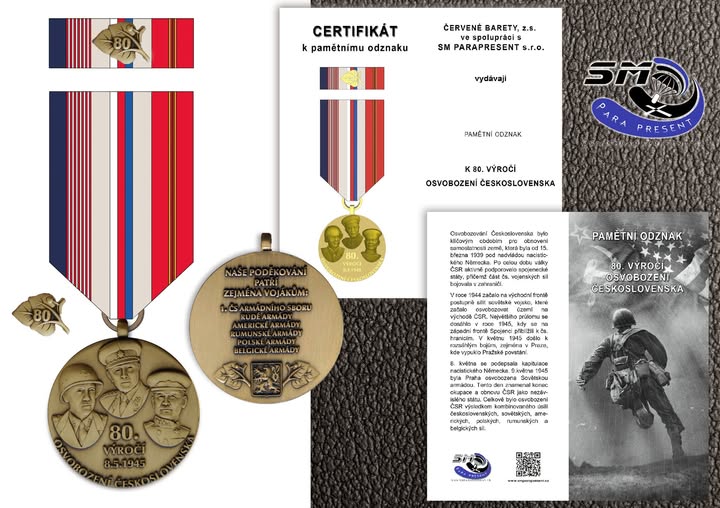Tak již je medaile v prodeji. Můžete objednávat. První distribuce (rozesílání PO) bude zahájena v pondělí 5.5. https://www.smparapresent.cz/po80osvobozeni/ (fb)