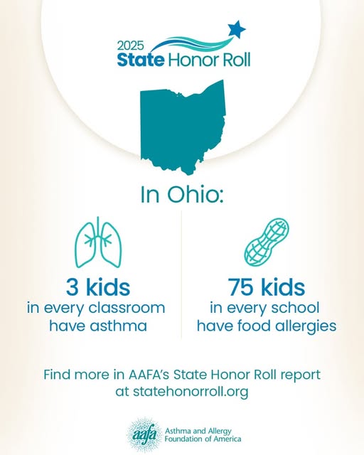 Ohio has less than half of the policies we recommend to protect the health of students with asthma and food allergies. Read our report to see what gaps Ohio should address to support healthier school environments. https://aafa.org/advocacy/state-honor-roll/ohio/ (fb)