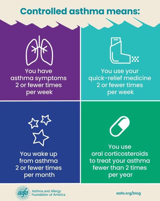 It’s Asthma Peak Month! Is your asthma under control? If you can answer yes to any of these questions, it is a sign that your asthma is not under control. Contact your doctor to make sure you’re getting the right treatment. - Do you have asthma symptoms more than 2 times a week? - Do you need your quick-relief medicine to treat symptoms more than 2 times a week? - Do you wake up from asthma more than 2 times a month? - Do you use oral corticosteroids (like prednisone) for asthma 2 or more times a year? Learn more about asthma control during Asthma Peak Month: https://community.aafa.org/blog/asthma-control-september-peak (fb)