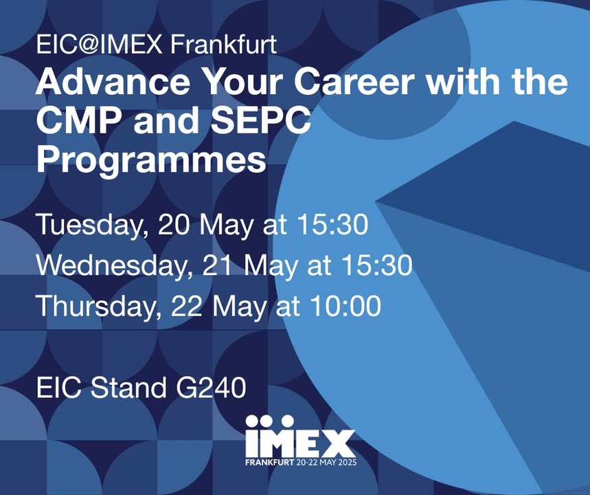 Are you headed to IMEX Frankfurt? Are you ready to grow your career in global business events? Discover how the CMP and SEPC programmes can help you stand out. Join us at the EIC Stand G240 for a look inside these globally recognized industry designations. See you there! #CMP #SEPC #EIC #EventProfs (fb)