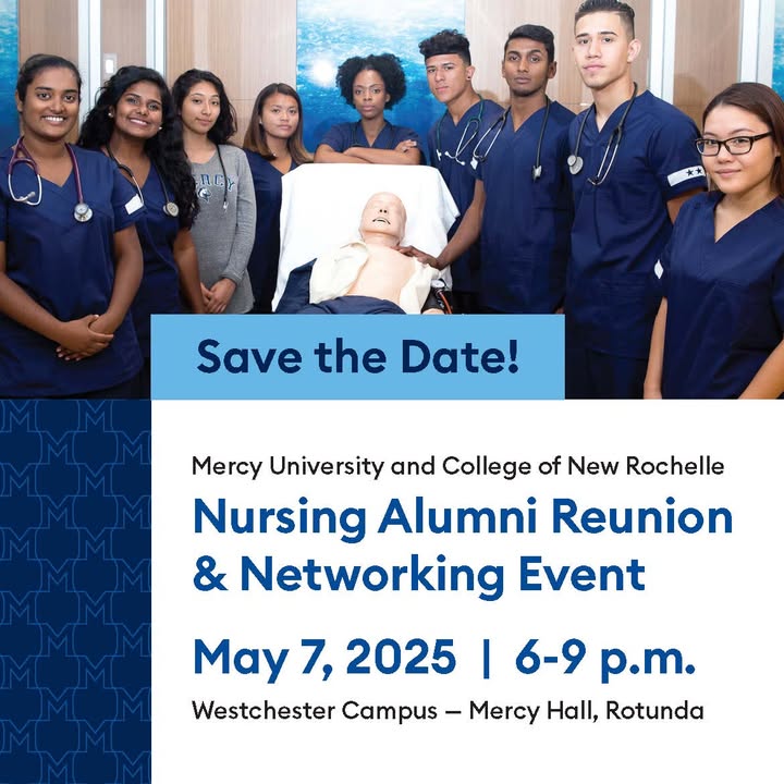 📣 Calling all Nursing Alumni 🏥 On May 7, 2025, you're invited to our Westchester campus for an evening of networking and community building with your fellow Mercy and College of New Rochelle graduates. RSVP today: https://alumni.mercy.edu/nursing-alumni-reunion-2025 (fb)