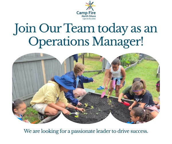 We're Hiring! Operations Manager – Full Time Lead. Innovate. Make an Impact. Join Camp Fire North Shore and oversee our preschool, afterschool, summer camp, and grant writing! ✅ Strong Team ✅ Big Mission ✅ Real Growth Apply Today & Help Us Build Brighter Futures! https://campfirenorthshore.isolvedhire.com/jobs/1541782-552423.html #CampFireNorthShore #NowHiring #LeadershipJobs #OperationsManager #LynnMA #YouthPrograms #MakeADifference (fb)